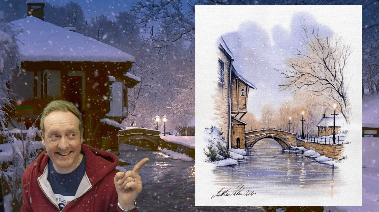 Working live from actual videos of actual scenes, from places around the world. I will teach you how to translate the actual scene into an amazing watercolour painting. Snow scenes on my favourite subjects and doing a painting holiday in the snow is impossible but here we can.