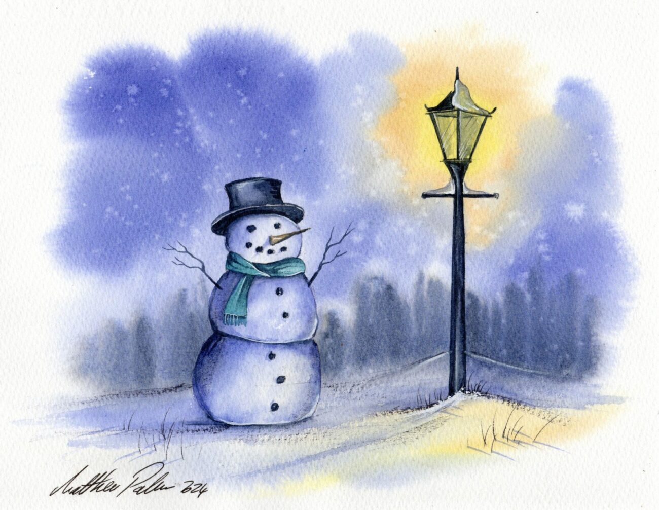 Work with Matthew to paint his lovely scene of a snowman standing under a l...