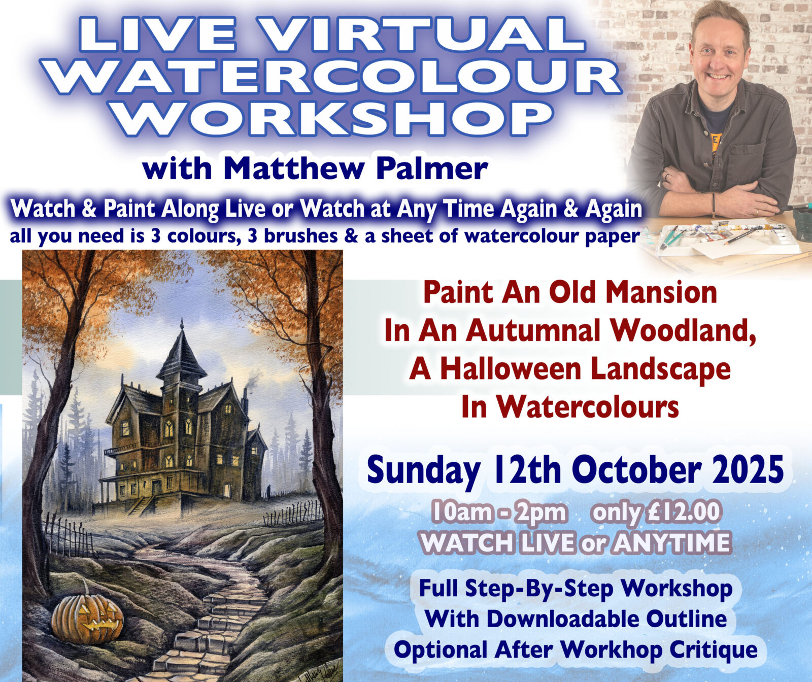 Join renowned artist Matthew Palmer for interactive live-streamed sessions. Learn expert techniques, ask questions, and create stunning artwork from the comfort of your home.