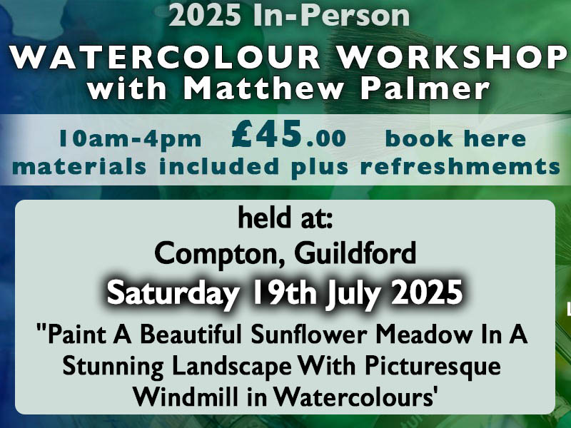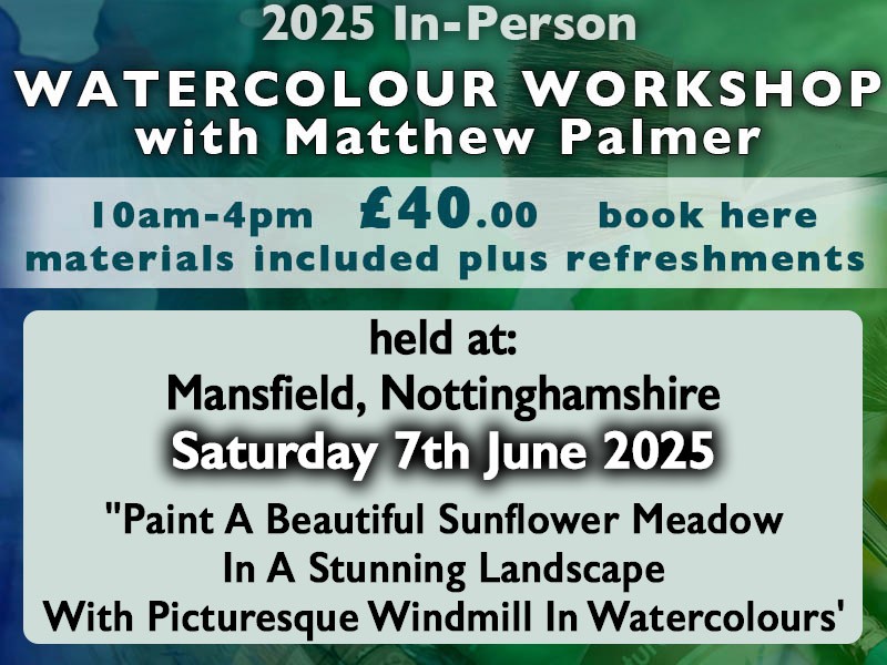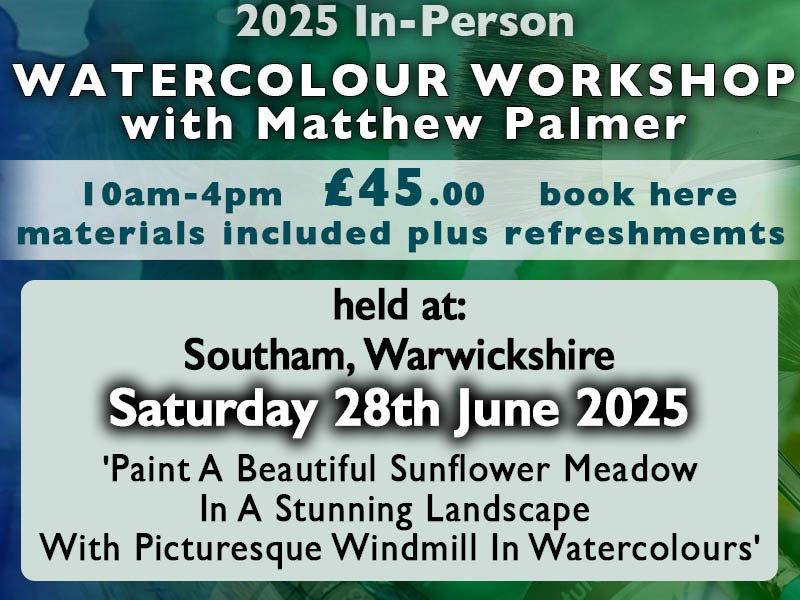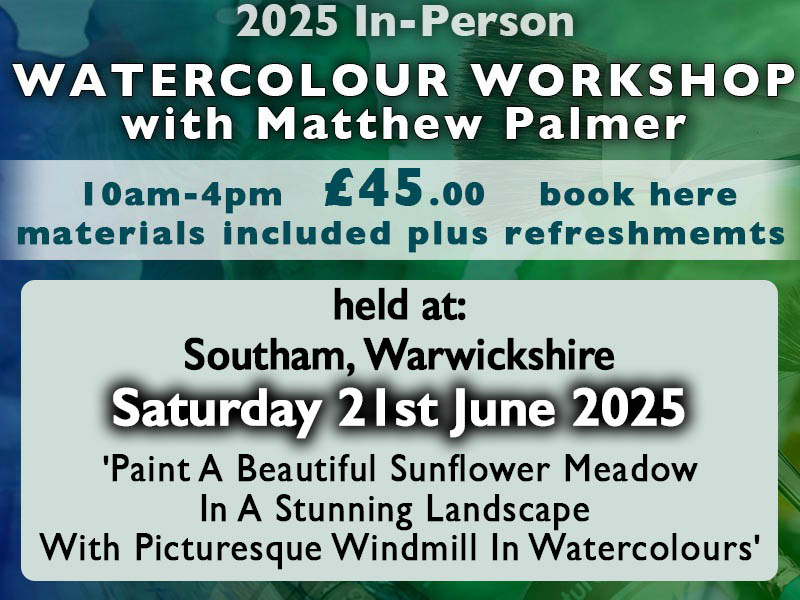Started 7 months ago Saturday 21st June 2025 In-Person Watercolour Workshop at Southam, Warwickshire £10.00 Add to basket Find out more