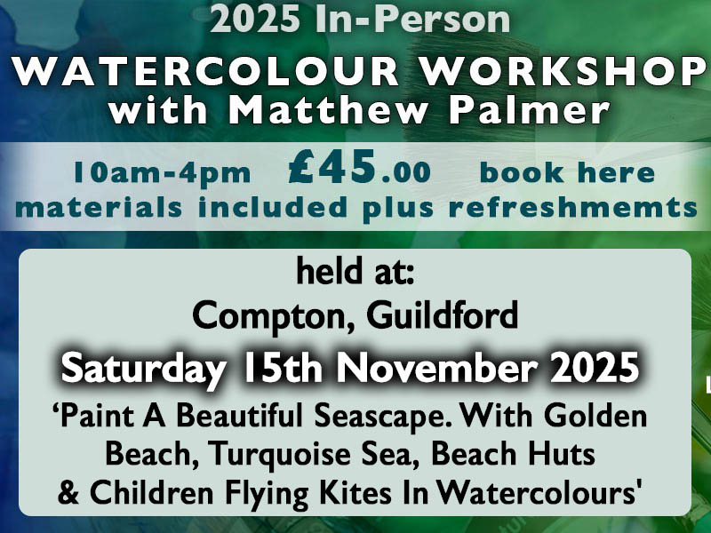 Started 3 years ago Saturday 10th September 2022 In-Person Watercolour Workshop at Compton, Surrey £10.00 Add to basket Find out more