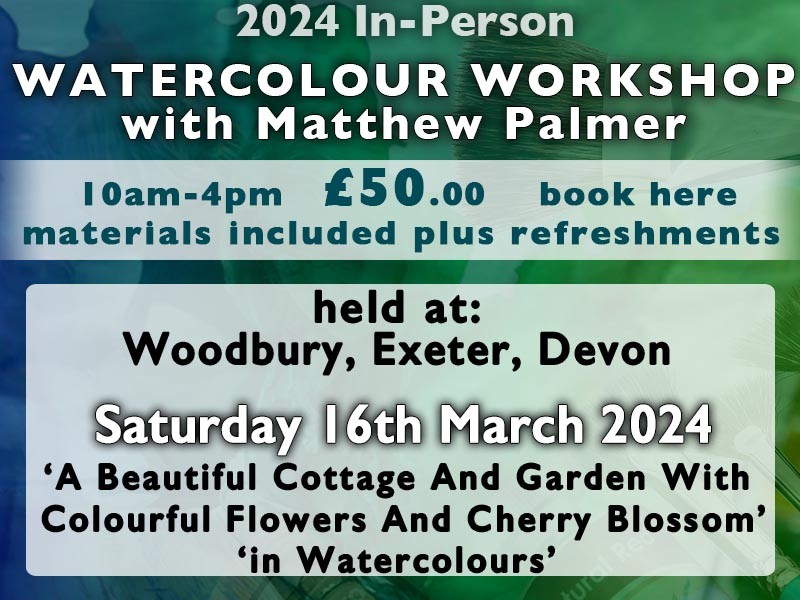 Started 1 year ago Live Virtual Watercolour Workshop with Matthew Palmer. Sunday 1st September 2024 – Plus NEW Chat Function & Extras Watch the workshop