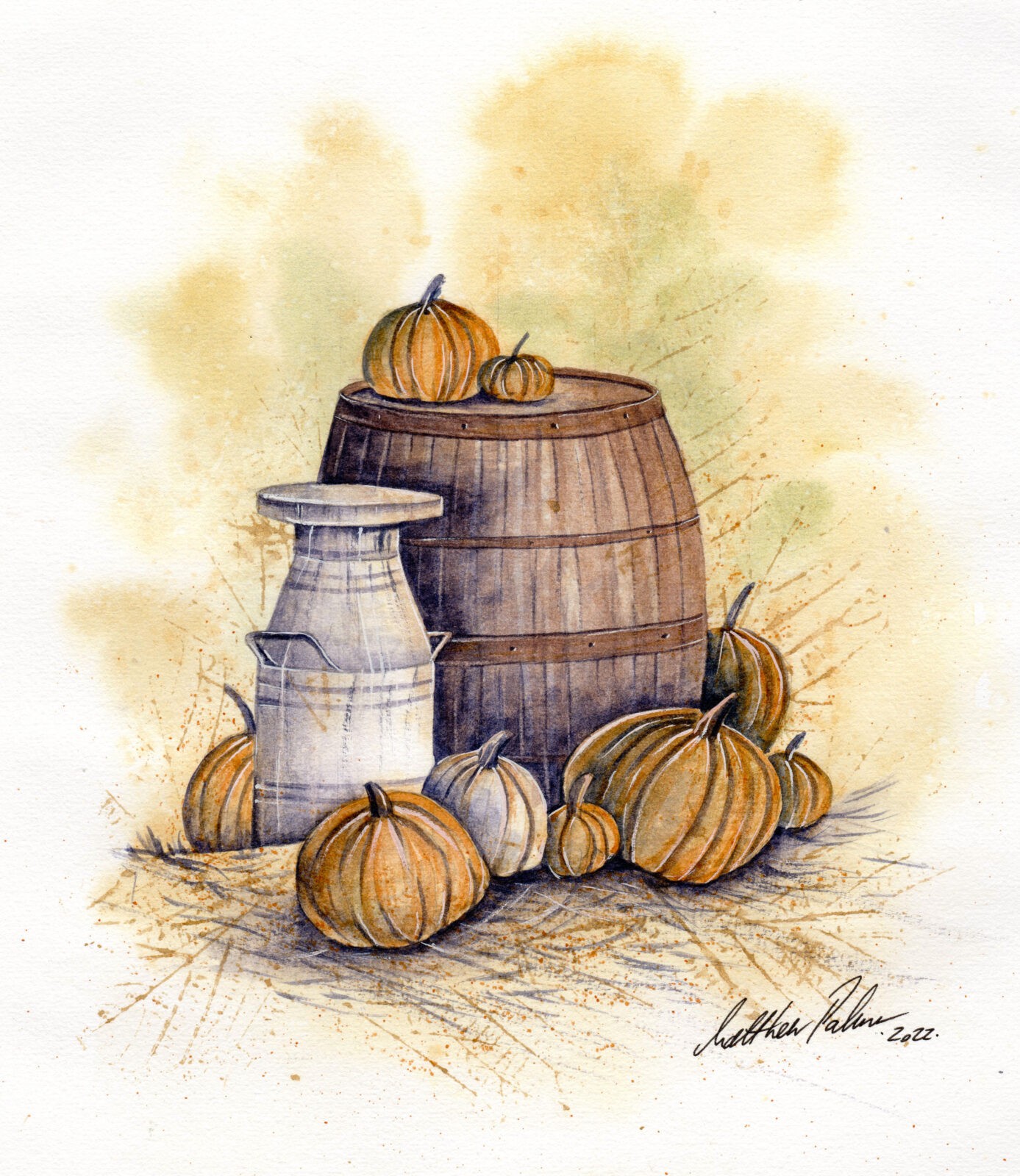 Started 3 years ago Paint A Harvest Time Vignette. With Pumpkins Milk Churn & Old Barrel- Previous LIVE Virtual Watercolour Workshop with Matthew Palmer £10.00 Add to basket Find out more