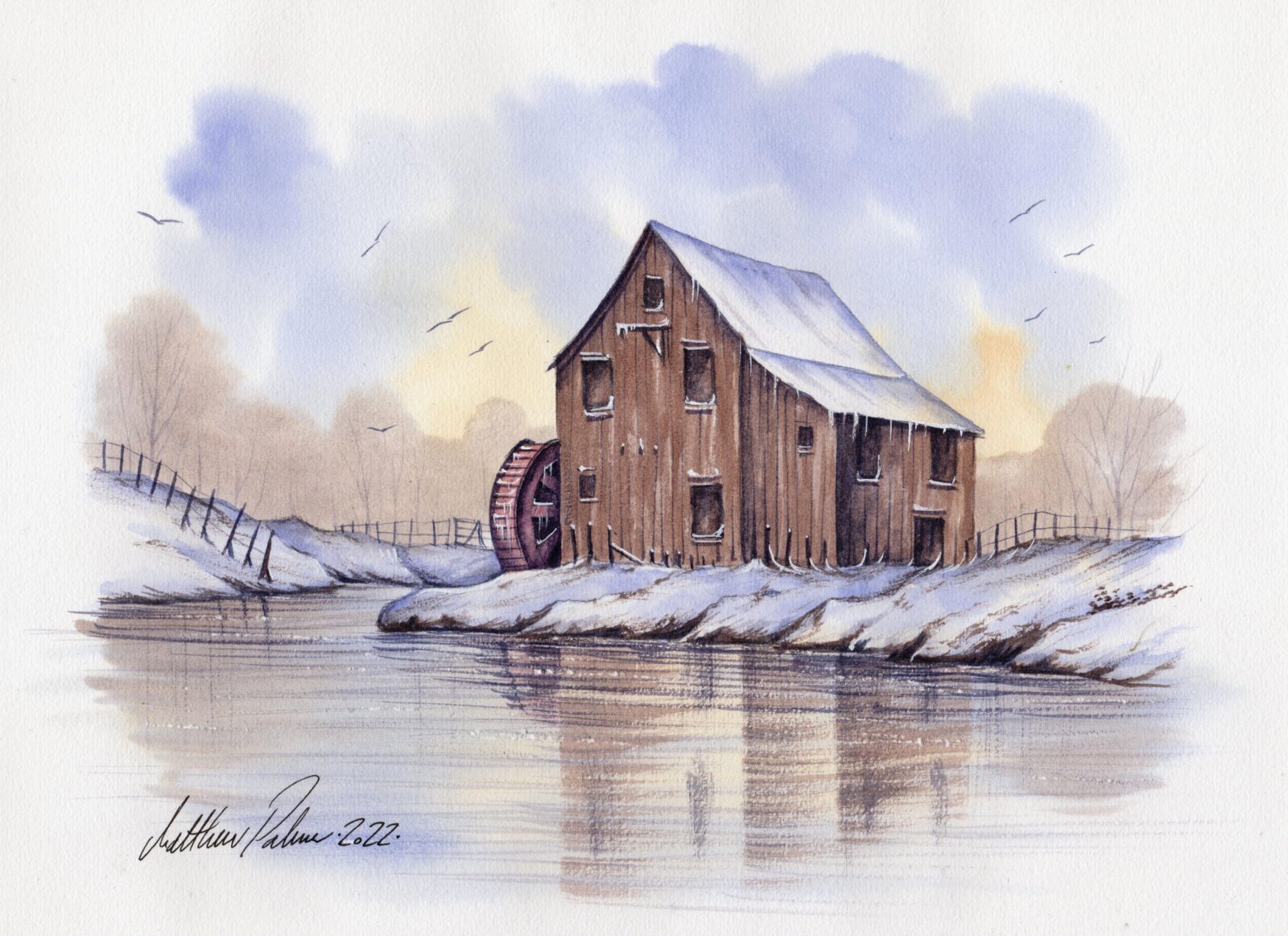 Started 3 years ago Paint A Picturesque Water Mill With Frozen Lake, In A Snowy Landscape- Previous LIVE Virtual Watercolour Workshop with Matthew Palmer £10.00 Add to basket Find out more